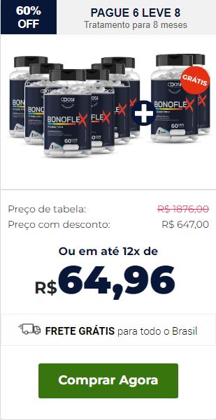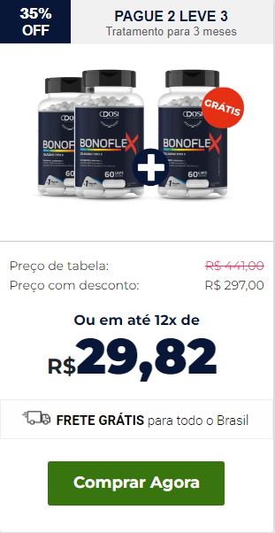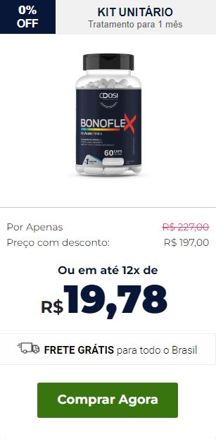 Adquirindo a BonofleX hoje, você receberá automaticamente a Garantia Blindada BonofleX de 150 dias, e você tem 150 dias para testar a nossa poderosa fórmula anti-dores. Se por qualquer motivo, dentro do prazo de 150 dias, você achar que o seu investimento não valeu a pena, nos avise pelo email de suporte (contato@bonoflex.com), que nós compraremos os fracos de volta de você! Mesmo que um frasco esteja violado ou vazio, pagaremos o preço integral que você pagou por eles cheios, sem perguntas e sem burocracia.